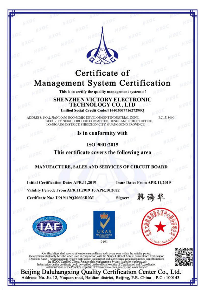 Victory has introduced world-class PCB production equipment and high-precision testing equipment. We adopted a scientific management model to form a strong and leading process manufacturing capability.